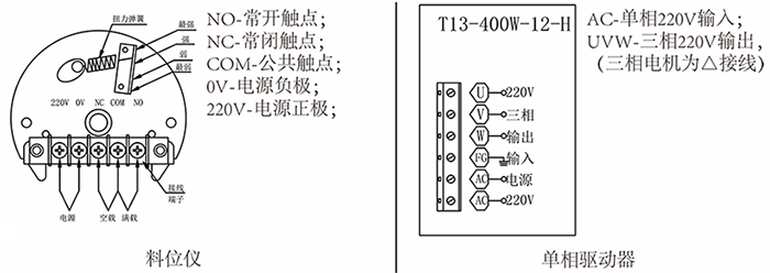 * 振动器可用PLC或时间继电器设置为通电1min,断电10min;